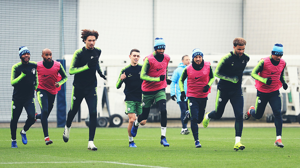 The Manchester City squad stepped out on to the training pitches for their final session ahead of Saturday's game against West Ham...