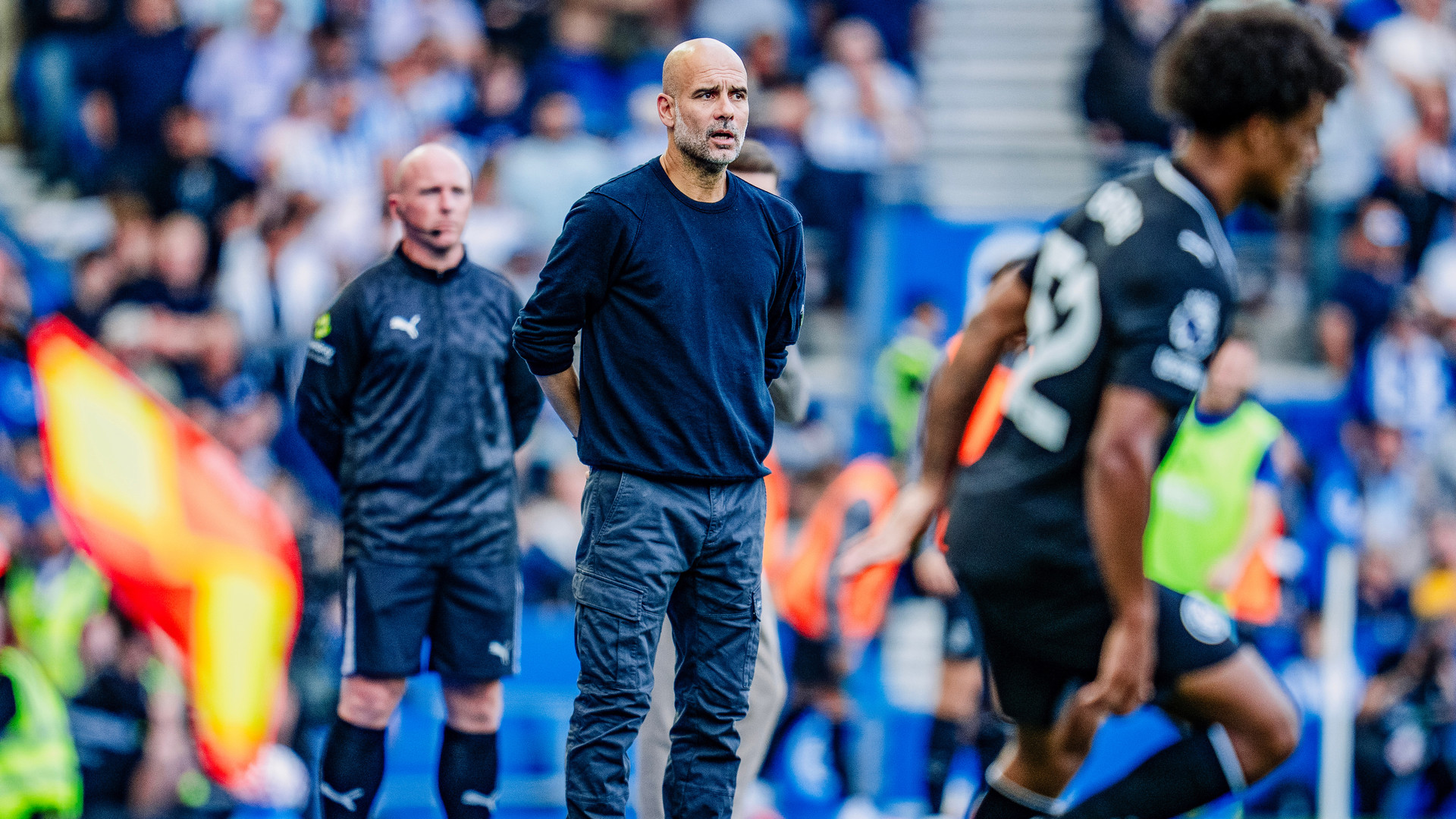 While City were on top, it was Brighton who had created the best opening to that point, with James Trafford denying Karou Mitoma at full-stretch after the winger had escaped the offside trap.