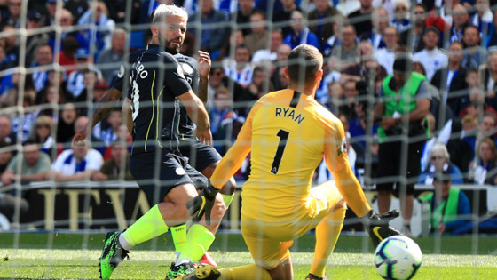 A free-kick on the edge of the Brighton box was awarded and the 4,000 City fans waited in anticipation behind the goal.
