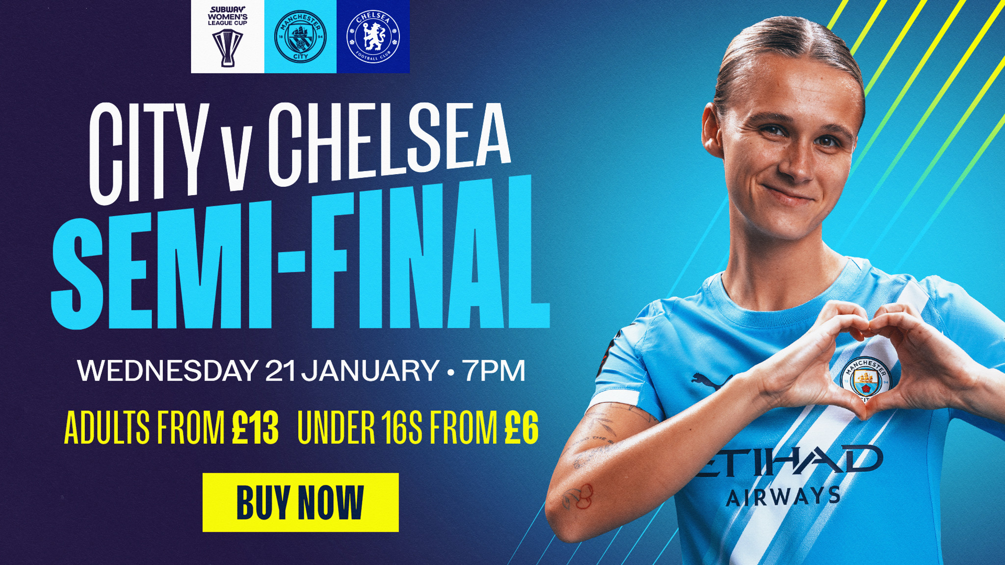 City welcome Chelsea to the Joie Stadium on Wednesday 21 January with a spot in the League Cup final up for grabs.