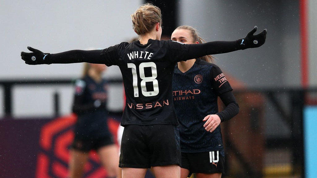 White opened the scoring with a fantastic first-time finish to help her side to a superb 2-1 win at Arsenal - a pivotal result at the top, especially with Chelsea and second-placed Manchester United both on the losing side.