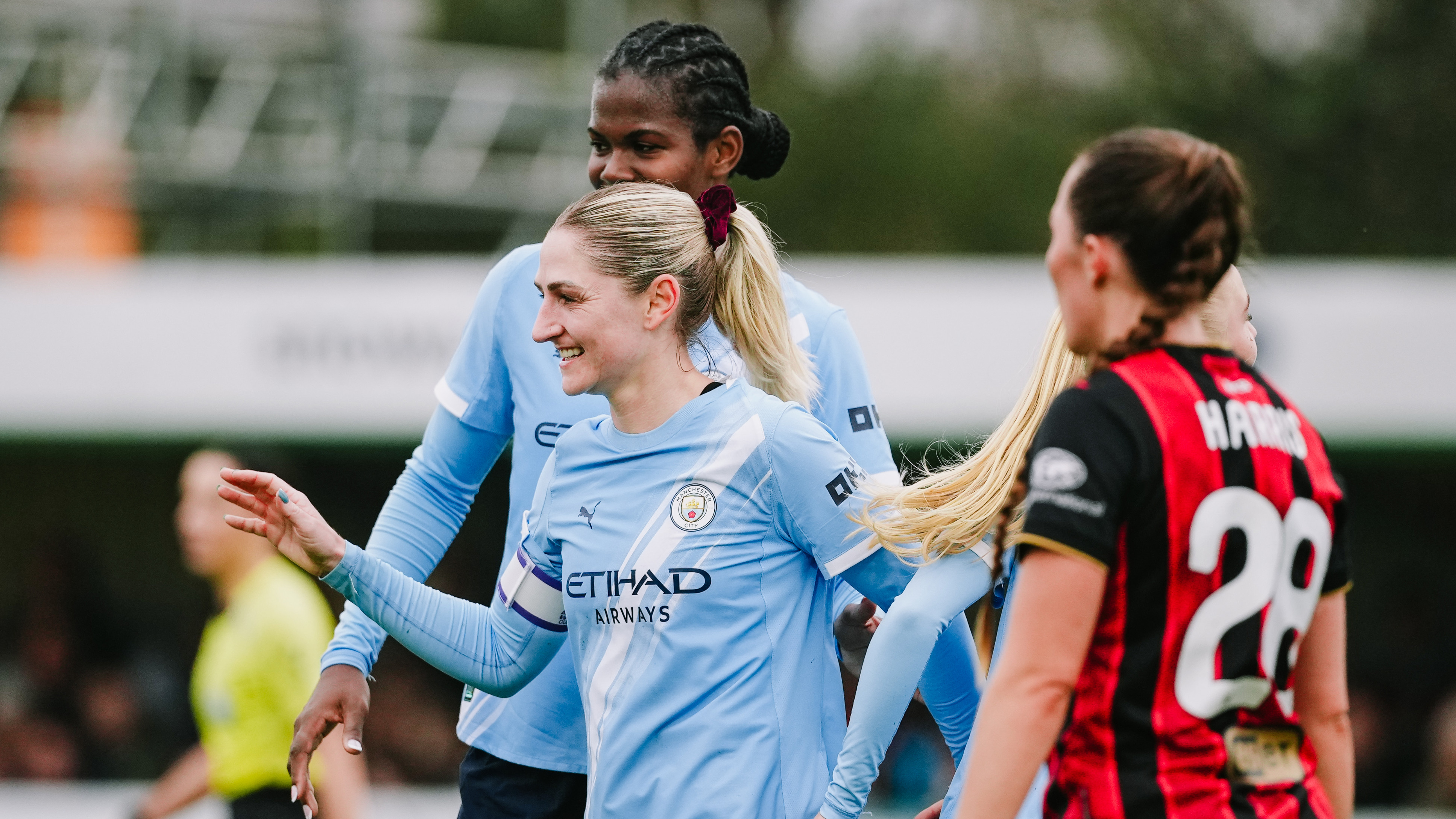 After Khadija ‘Bunny’ Shaw and Lauren Hemp had given us a two-goal lead five minutes before half-time, Coombs scored twice ahead of the interval to raise her tally to five so far this season.